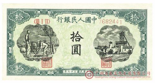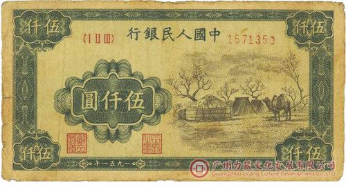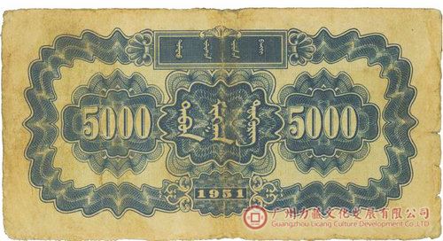 中华人民共和国成立初期,除台湾省、香港、澳门外,东北、内蒙古、新疆省和西藏地区仍允许流通使用地方货币,这是从地方实际情况出发制定的暂时性措施。东北和内蒙古地区解放较早,物价已基本稳定,为使它们不受关内物价波动的影响,尽快地恢复和发展生产,支援全国解放战争,党中央决定暂时保留东北和内蒙古地区的货币制度。至20世纪50年代初,我国经济形势渐趋好转,财政收支基本实现平衡,中央人民政府政务院于1951年3月20日发布命令,收兑东北银行和内蒙古人民银行发行的地方性流通券,并于同年5月17日发行带有蒙文的人民币(图2)投放流通,人民币占领了东北、内蒙古地区市场。