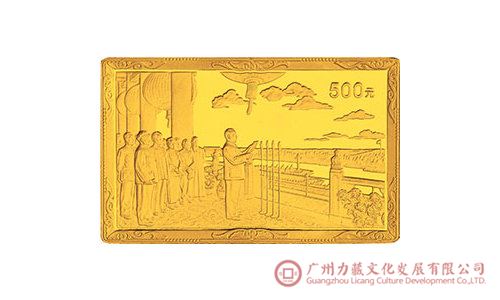 5盎司金质纪念币背面图案为开国大典,并刊面额。