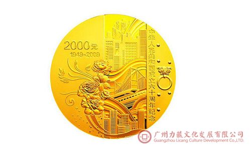 2009年中国人民银行发行中华人民共和国成立60周年金银纪念币,一套5枚。金银纪念币正面图案均为中华人民共和国国徽、牡丹花纹饰组合图案,并刊国名及发行年号。