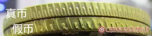 五、钱币边缘齿纹采用了长短纹路设计,假币齿纹间隔较宽,深浅不规则。