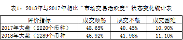 2018年与2017年相比市场交易活跃度的变化状况见表1。