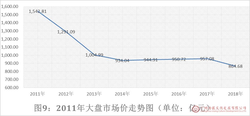 我国金币市场的这次调整是从2011年开始的,扣除相应发行增量,2011年大盘的交易价格走势见图9。
