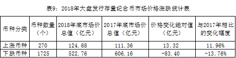 2018年大盘发行存量纪念币的币种涨跌状况见表9。
