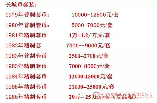 86年长城币为精制币,发行量才660套,当时是作为赠送外宾的礼品,国内存量极少。目前一套86年的长城币价格在20~25万左右。