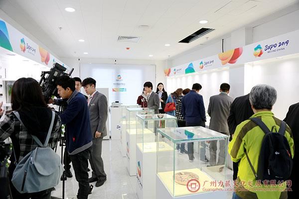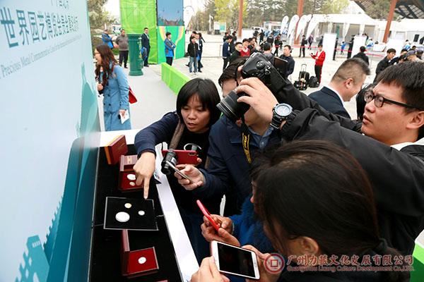 应邀到场的媒体记者争相拍摄世园会贵金属纪念币