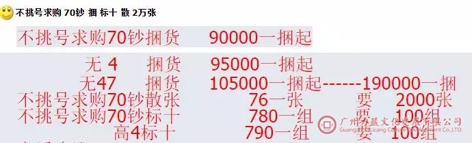 目前由于价格回落,市场大量求购70周年纪念钞的苗头又有所兴起,尤其是70周年钞的特殊品种。如:豹子号,狮子号,生日钞,等等。