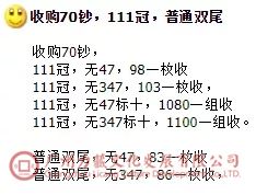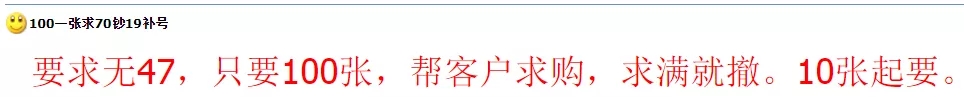 100元一张求购70钞补号: