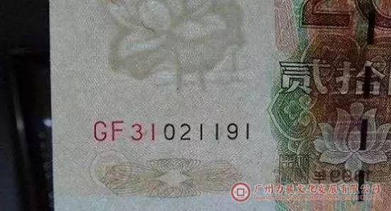 99年20元被简称“9920”,一共发行了104个冠号,发行量之少在五版中排行老二(最少的是99年50元,发行了78个冠号)。995发了107个冠,9910发了201个冠,99100是402个冠。