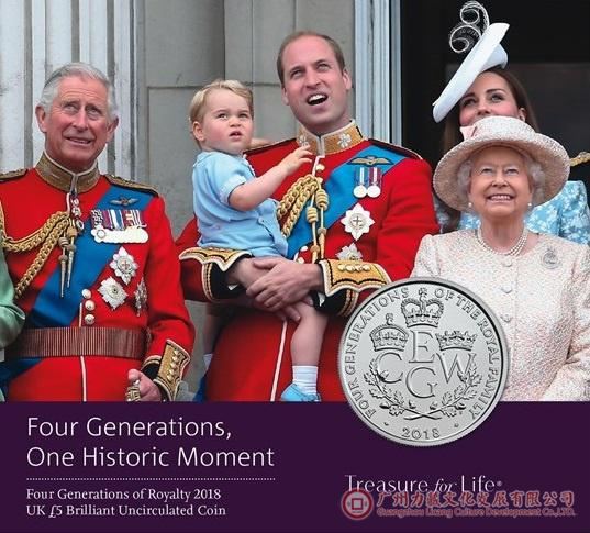 乔治小王子的出生,使100多年来英国王室首次出现君主和准君主“四世同堂”,所以造币厂还铸造了这一主题的纪念币。
