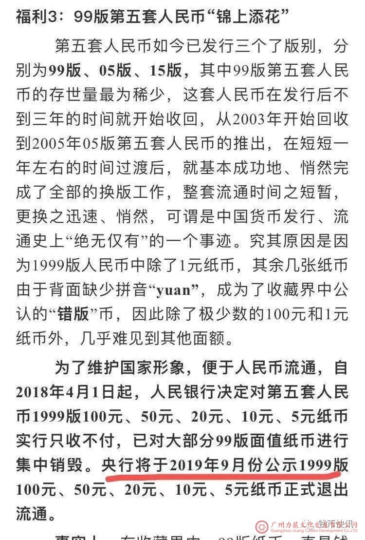 19版人民币的发行,利好之一就是99版人民币了。99版人民币作为五版币的龙头品种,又有“错版”之说,一直是藏友们的关注热点。