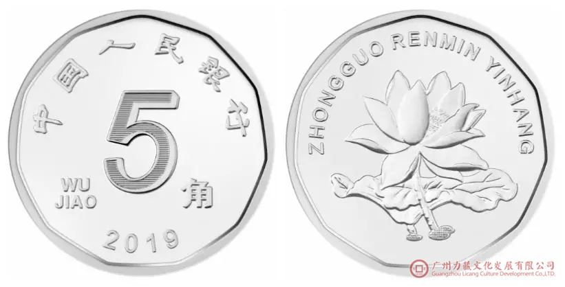 新版5角:材质由钢芯镀铜合金改为钢芯镀镍,色泽由金黄色改为镍白色;正背面内周缘由圆形调整为多边形;直径保持不变。