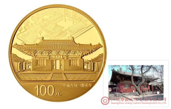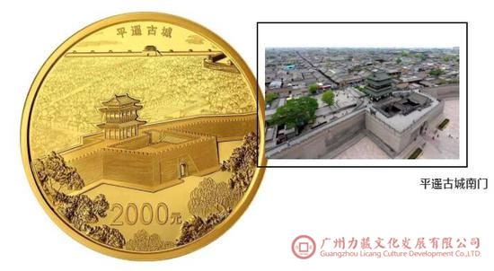 金银币正面主图均为平遥古城迎薰门