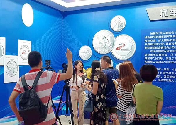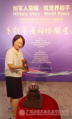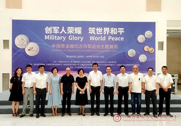今年10月17日至28日,国际军事界最高级别的体育赛事——第七届世界军人运动会将在中国武汉举办。7月10日上午,由中国金币总公司、第七届世界军人运动会执行委员会、中国人民银行武汉分行以及湖北美术馆合作举办的“创军人荣耀,筑世界和平”——中国贵金属纪念币军运会主题展览,在湖北美术馆4号厅开幕。展览全方位、多角度地展示了中国人民银行从1979至2019年发行的涉及中国军事、外交和体育方面的贵金属纪念币。中国金币总公司董事李竞雄、董事王安,武汉军运会执委会副主任、市政府副市长陈邂馨,市政府副秘书长李涛、武汉军运会执委会专职副秘书长王沈顺、执委会市场开发部部长张东斌、执委会新闻宣传部部长曹竹,中国人民银行武汉分行工会主任江成会、货币金银处处长王以成,湖北钱币博物馆馆长雷玉宁、湖北省美术馆馆长冀少峰、书记、副馆长李和清等领导及嘉宾参观展览,人民日报、新华社、光明日报、解放军报、经济日报、中国日报、中央广播电台、中央电视台、中国国际广播电台(国际在线)、中新社、金融时报、中国青年报、中国体育报、环球时报、中国证券报、中国黄金报、中国金融家杂志、中国金币网、中国消费者报、集邮博览杂志、湖北日报、湖北之声、湖北卫视、楚天都市报、湖北经视、楚天交通广播、澎湃新闻、湖北电视台综合频道;长江日报、武汉广播电台、武汉电视台(武汉新闻)、武汉电视台(民生e线)、执委会官宣报道团队、百度新闻、网易新闻、新浪新闻、梨视频、上策传媒、汉声等新闻媒体的记者对中国贵金属纪念币军运会主题展览进行采访报道。