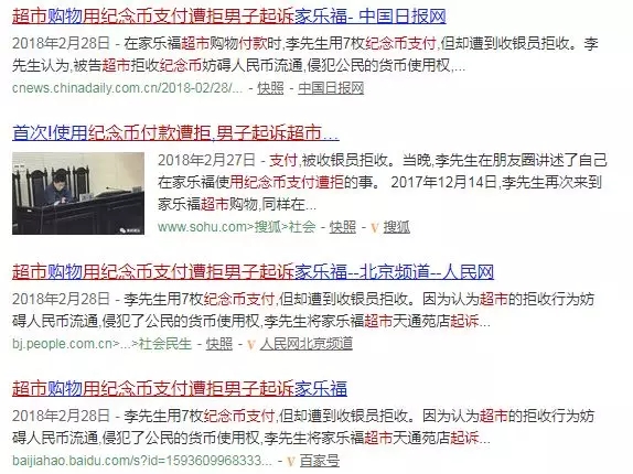 其实现在纪念币的发行量并不算小,但流通依旧处处受阻。去年,有人用建军90周年纪念币去超市付款,却因收银员不认识而被拒收: