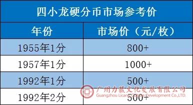 硬分币中除了五大天王,还有个四小龙,分别为55年1分、57年1分、92年1分、2分。