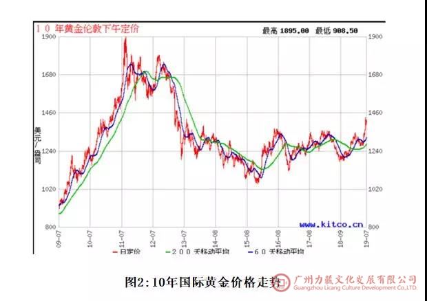 黄金是我国现代贵金属币最重要的基础物质。自从2015年出现本轮黄金调整周期1049.40(美元/盎司)的底部后,国际黄金价格开始缓慢震荡上行。由于受到美联储降息预期、贸易摩擦加剧、全球经济放缓和地缘政治不稳定等因素影响,黄金价格于今年6月开始出现新一轮突破。假定黄金价格箱体震荡的重心能够继续上移,从外部环境看将对我国金币市场形成重大利好,对此人们应该密切关注。