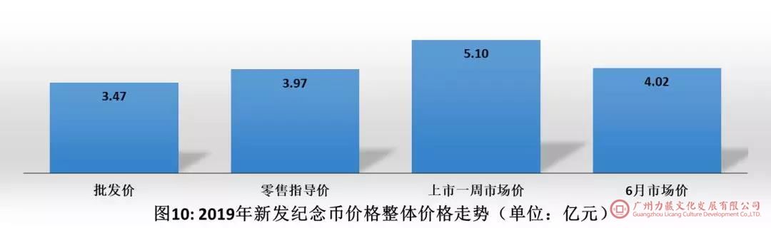 如图10所示,2019年新发币种批发价总值3.47亿元,零售价总值3.97亿元,上市一周市场价总值5.10亿元,与零售价相比上升28.26%,到6月底市场价总值4.02亿元,与最高点相比回落21.10%,与零售价相比高1.20%。