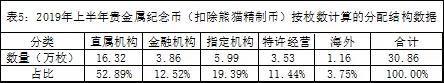 (特别说明:这份简报的数据来源于“中国现代贵金属币信息分析系统”。2019年发行存量数据的对比基础是2018年的市场数据,2019年中期数据的统计时点截止到2019年6月30日。以上数据仅供参考,投资有风险,入市需谨慎。)