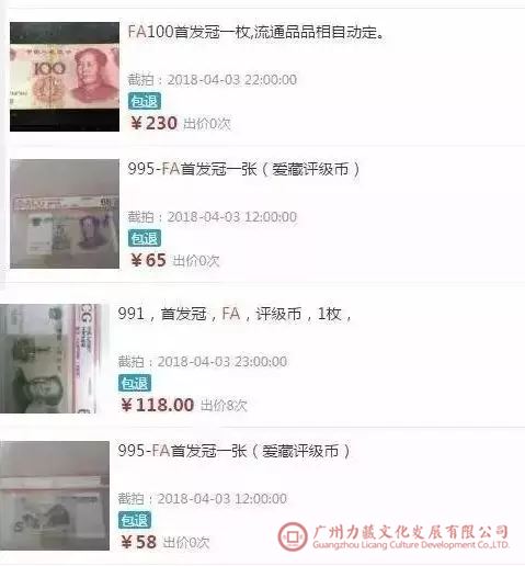 拿大家都有的第五套人民币举例,冠号是FA的纸币就是首发冠,只要冠号是FA,就有比较高的收藏价值!大家可以看看自己手中的纸币,有没有FA冠号的。