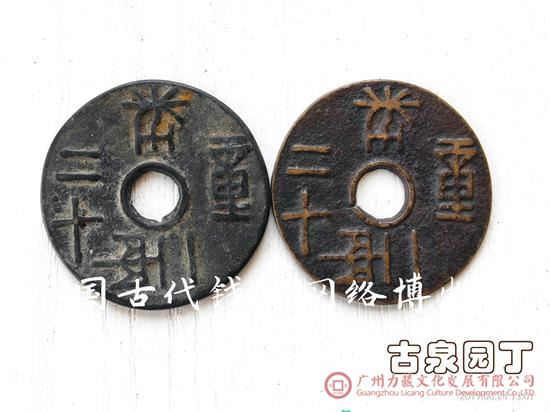 第二、圜钱有大小三种。小型钱看到若干种。“重一两十二珠只有大中两种。那么它的价值怎样计算:重一两十二珠,”显然为36铢,24+12铢。中型的为一两(24铢)。还有小的就为“十二铢”。