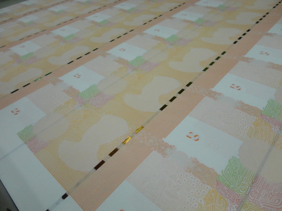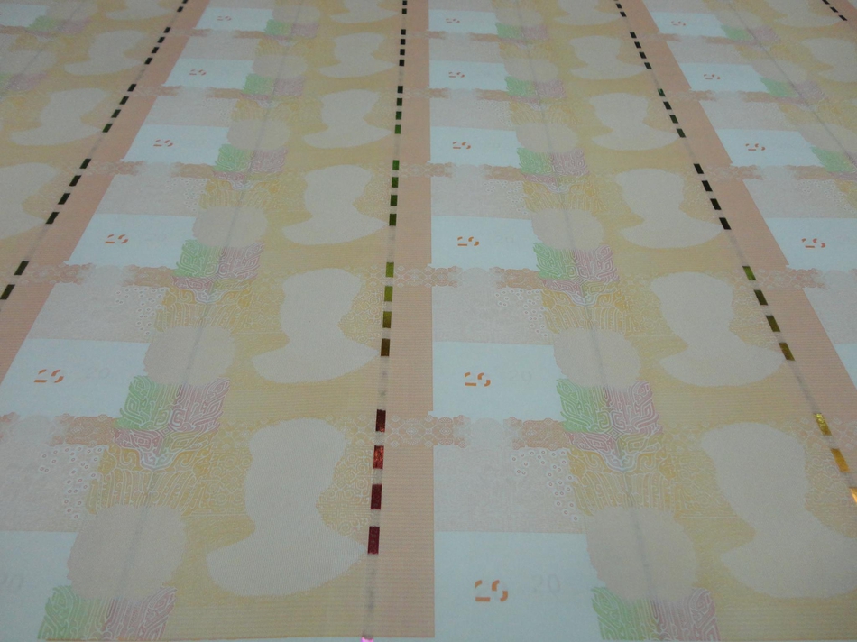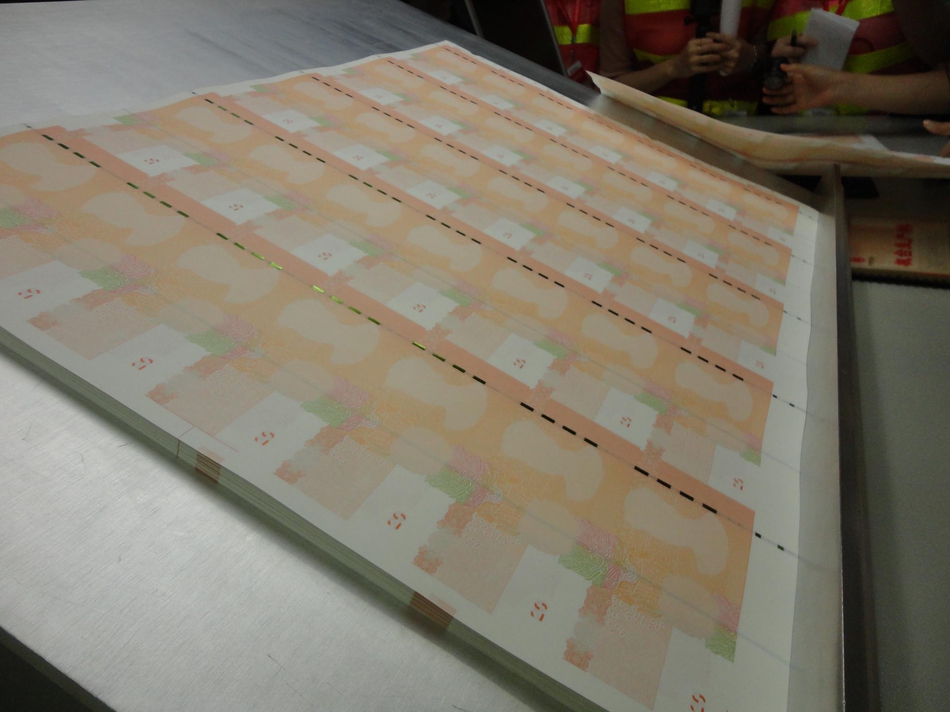 胶印工序主要完成钞票正背面底纹图案的印刷。通过鲜亮、精美的底纹图案,赋予钞票特定的色彩美感。