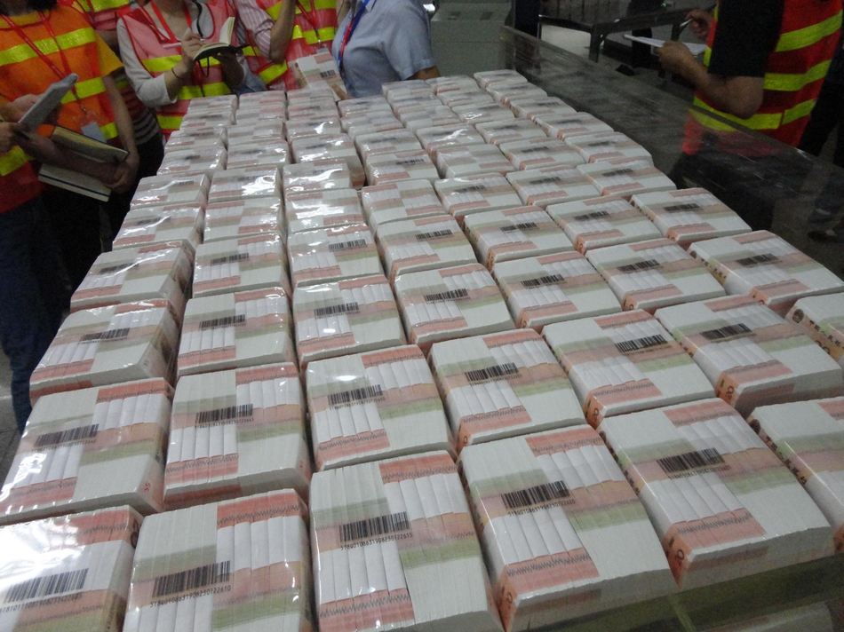 据悉,2019年版人民币的印制工艺,主要包括胶印工序、凹印工序、丝网和凸版工序、正背面涂布、检封装箱五大工序。具体如下: