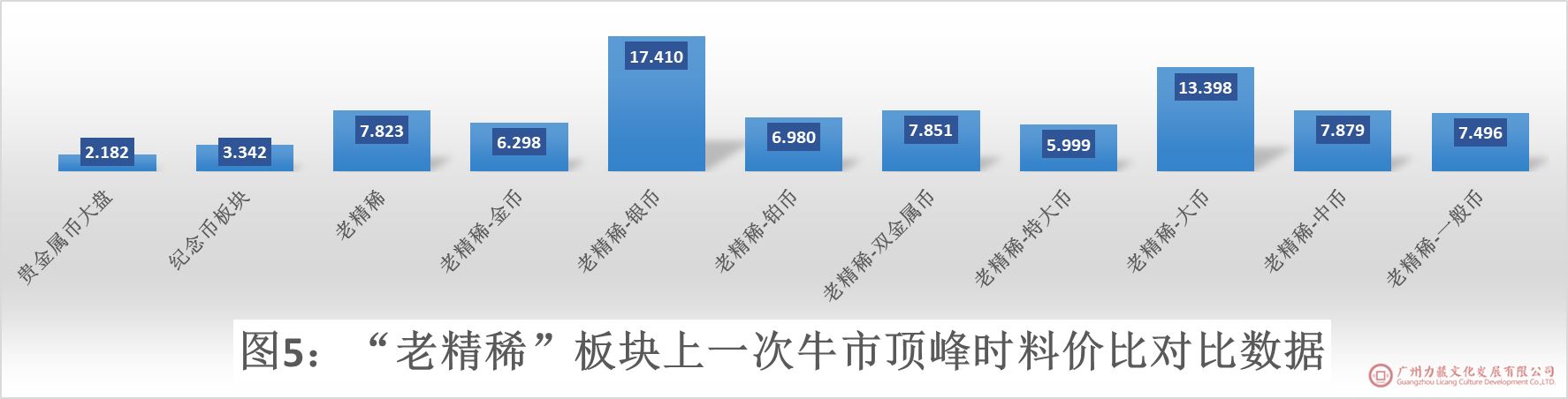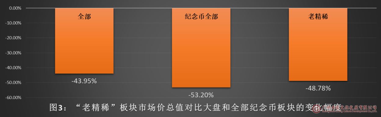 2.“老精稀”板块是整个现代贵金属币的组成部分之一,那么这个板块在整个现代贵金属币中的相对表现如何呢?