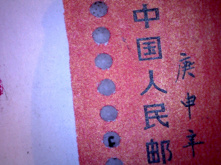 看到eBay的#260712536644信封上的《T46庚申年》金猴票,化了很长时间,在分割放大下,并将原票放大200倍作出分割对比,才确定在此信封上7枚“金猴”是假的雕刻版邮票!其仿真度之高,着实吓了一大跳。