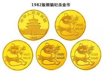 ● 1982年首次发行熊猫金币,当年所发行的4枚金币均没有标准面额(但正面有“中华人民共和国”字样)。