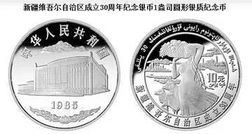 ● 不同题材、不同规格的纪念币标注相同的面额。如1985年发行的联合国妇女10年纪念银币规格为1/2盎司,面额标注10元;同年发行的西藏自治区成立20周年银币和新疆维吾尔自治区成立30周年纪念银币规格为1盎司,而面额也标注10元。