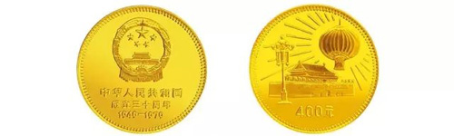中国现代贵金属纪念币诞生于改革开放伊始的1979年,中华人民共和国成立30周年纪念金币是中国现代第一套纪念金币,该套纪念币包括1/2盎司金币4枚,不同于南非福格林金币上不标注面额的做法。该套金币背面均标有400元的面额。自中国第一套现代纪念金币诞生后,除1982年首次发行的熊猫金币没有标注面额外,中国现代贵金属纪念币上均标有面额。