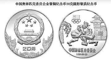 ● 同一年份、同一题材、同一规格的纪念币标注不同的面额。如1980年发行的中国奥林匹克委员会古代摔跤银币和古代射艺银币,两者均为20克银币,但前者标注面额为20元,后者标注却为15元。
