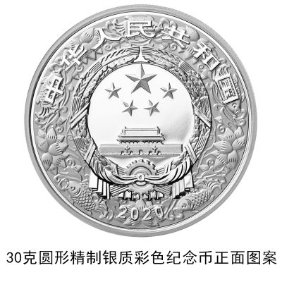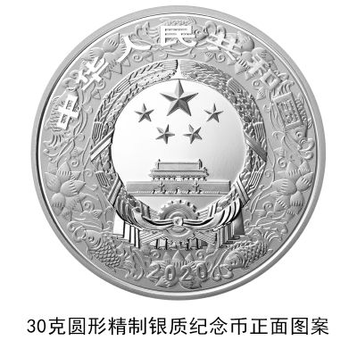 (二)30克圆形银质纪念币为精制币,含纯银30克,直径40毫米,面额10元,成色99.9%,最大发行量200000枚。