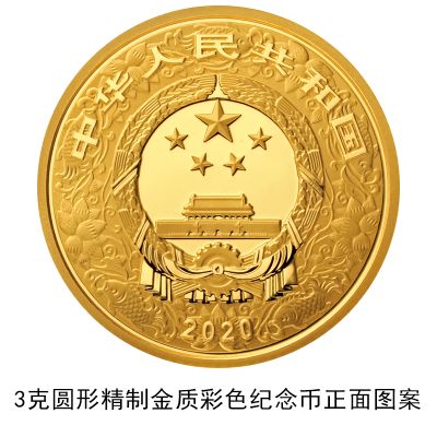 (三)3克圆形金质彩色纪念币为精制币,含纯金3克,直径18毫米,面额50元,成色99.9%,最大发行量120000枚。