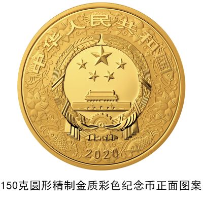 (十一)150克圆形金质彩色纪念币为精制币,含纯金150克,直径60毫米,面额2000元,成色99.9%,最大发行量1000枚。