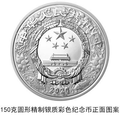 (十二)150克圆形银质彩色纪念币为精制币,含纯银150克,直径70毫米,面额50元,成色99.9%,最大发行量10000枚。