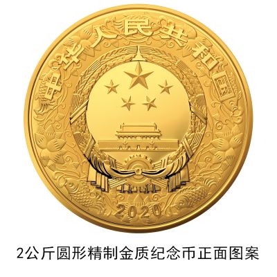 (十六)2公斤圆形金质纪念币为精制币,含纯金2公斤,直径110毫米,面额20000元,成色99.9%,最大发行量50枚。