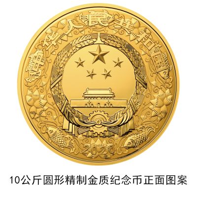 (十七)10公斤圆形金质纪念币为精制币,含纯金10公斤,直径180毫米,面额100000元,成色99.9%,最大发行量18枚。