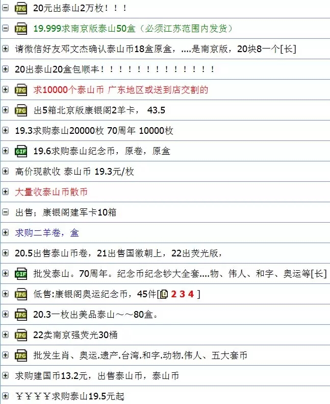 现场兑换结束,盘内热情依旧十分高涨!今日开盘后,泰山币卷币求购价19-19.7元左右,盒币求购价在20-20.3元左右,出售价在20-20.5元左右,19.7元有大单成交,求购以卷盒为主,散币求购稀少;荧光桶市场求购价也出现明显上涨,目前行情在21-23元左右。