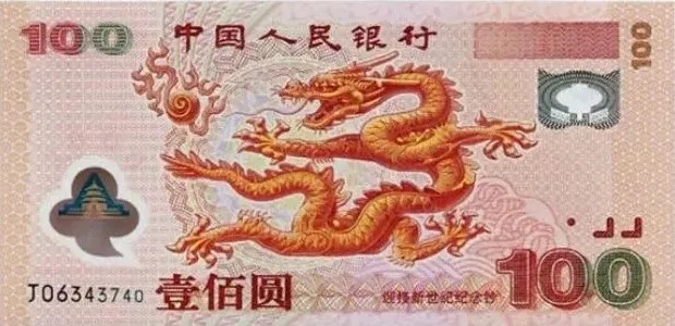 龙钞是我国第一张塑料钞,是中国人民币银行为迎接新世纪而发行,又称世纪龙钞。