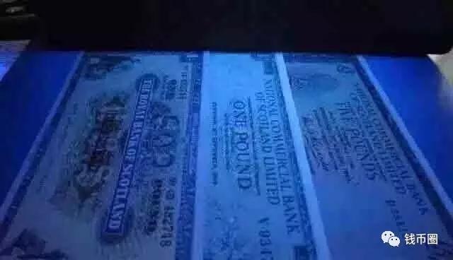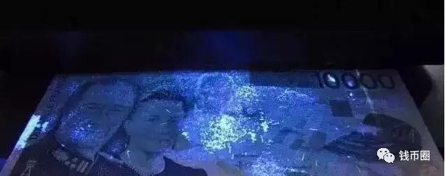 随着纸币收藏热度增加,很多币商会对品相不好的纸币进行处理,为了就是卖个好价钱。荧光灯的应用随之就多了起来,很多处理过的纸币在荧光灯下都会现形。荧光灯不仅会照出人为处理过的痕迹,一些年久受潮的纸币也会显现出白色斑块来,我们称之为潮斑。
