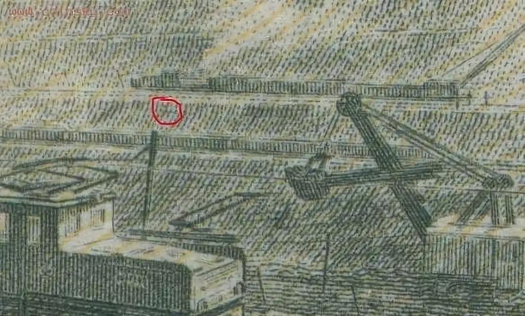 贰元暗记:背面石油钻井架下,草丝中藏有一个“2”字和"R"