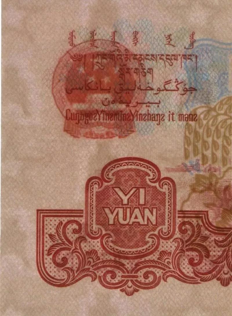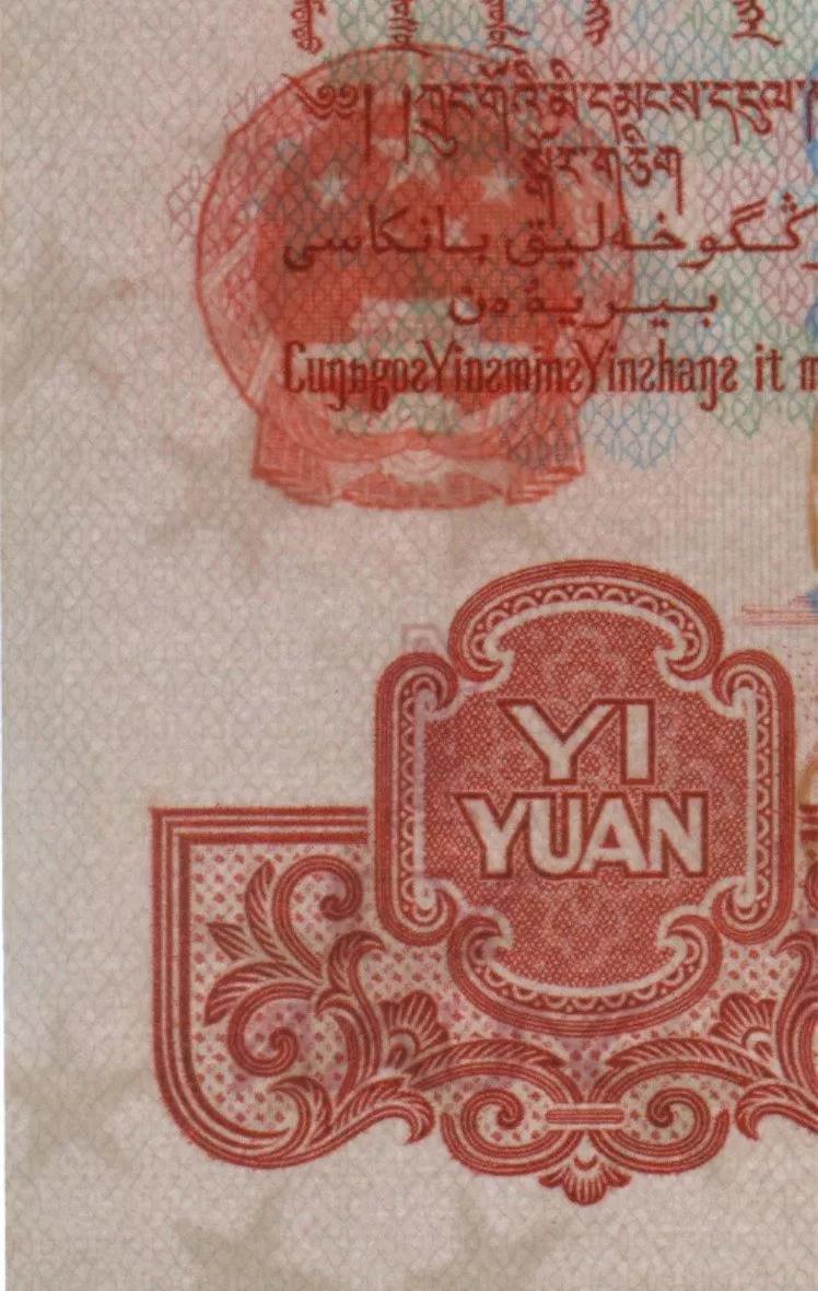 壹元暗记:背面右侧山坡上有“工”字暗记