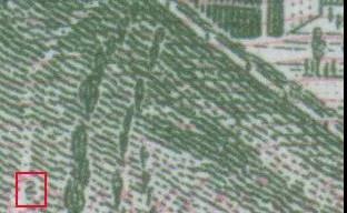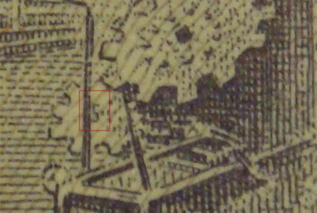 正面大桥左桥头坡地上,在初期凹印时无暗记,而在后改胶印时增设了“2”字暗记。