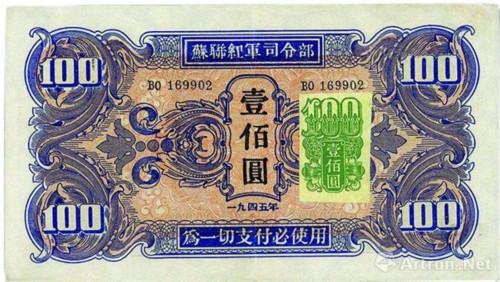 图1 1945年苏联红军司令部壹佰圆“加贴票”