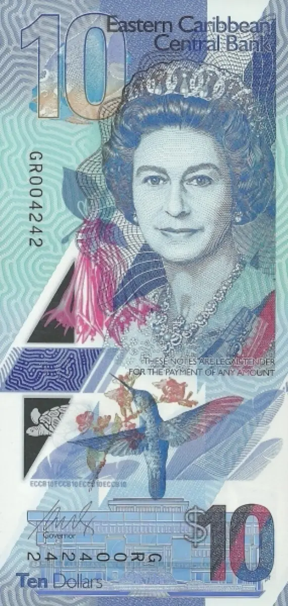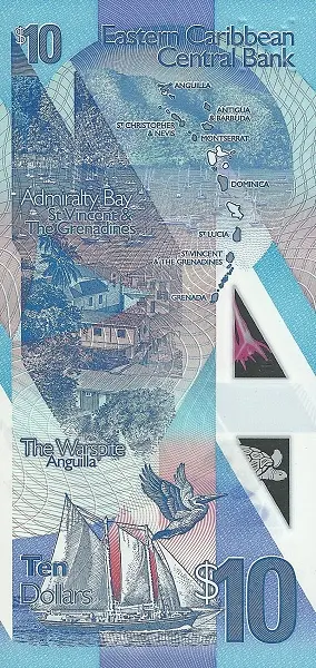 背面主图案为六位当地妇女跳舞的画面,票面上侧是全貌的绿鬣蜥,底纹是当地的手工品纹样。