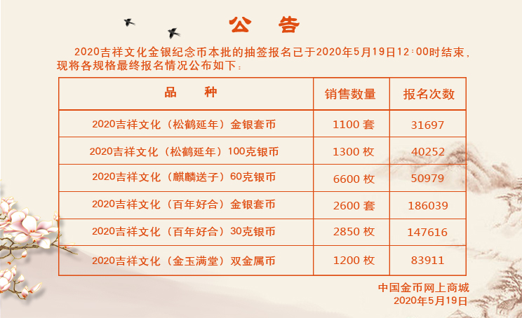 从上表可以看出,金总这次抽签放出的量远远小于市场需求,尤其是双金属币和百年好合金银币,金玉满堂双金属的中签率仅为1.4%,百年好合金银套中签率仅为1.3%,单银仅1.9%!