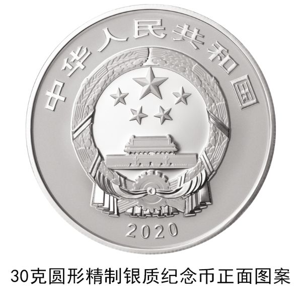 30克圆形银质纪念币为精制币,含纯银30克,直径40毫米,面额10元,成色99.9%,最大发行量20000枚。