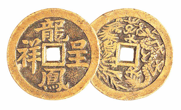 这是一枚明代“龙凤呈祥”背龙凤花钱,钱径4厘米。一直以来,人们对于龙凤呈祥的吉语早已耳熟能详,但要提及“龙凤呈祥”的故事来由,或许还有一些人不清楚。本文就借助这枚花钱,探史溯源。