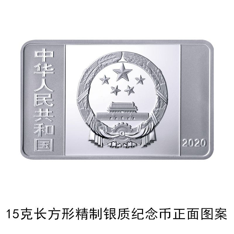 15克长方形银质纪念币为精制币,含纯银15克,规格32毫米×20毫米,面额5元,成色99.9%,最大发行量3×300000枚。